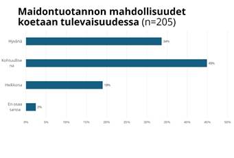 Kyselyyn vastanneista reilu puolet näkee sukupolven vaihdoksen omalla tilallaan olevan jossain vaiheessa mahdollista. Merkittävin maidontuotannon jatkuvuuteen negatiivisesti vaikuttava asia on työn suuri sitovuus. Myös kannattavuus- ja jaksamispaineet näkyivät vastauksissa.