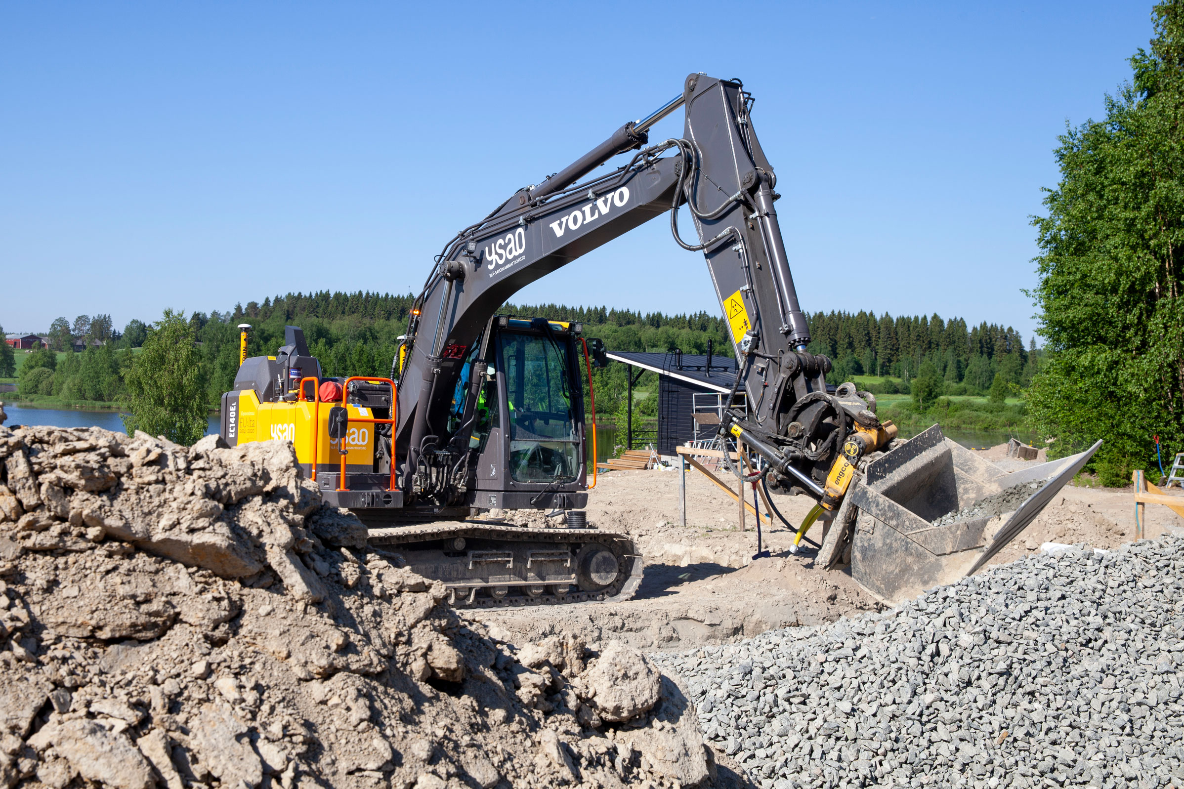 YSAOn maarakennusalan opiskelijoiden ja kuopiolaisen, ammattiurheilija Ilkka Herolan tiet yhdistyivät, kun Herola hankki veljensä kanssa Kuopiosta kaupunkitontin. Työmaalle nousee kaksi omakotitaloa rakennusalan ammattilaisten, Herolan perheenjäsenien sekä YSAOn opiskelijoiden voimin. – Mukava tekemisen meininki on koko ajan ja ollaan aikataulussa. Itsekin olin enemmän paikalla ennen tiukempaa harjoituskautta ja leirityksiä. On ollut hieno nähdä miten nämä tulevaisuuden ammattilaiset ovat maaurakointia tehneet. Herola seuraa opiskelijoiden kaivinkoneenkäyttöä ja jatkaa: – He ovat olleet isona apuna meille, ja toivottavasti saaneet mielekästä ja ehkä erilaista tekemistä. Näkevät vaiheittain etenevää rakennusprojektia käytännössä. Maaninkalainen Erno Tuovinen on yksi maarakennusalan opiskelijoista, jotka pääsevät työskentelemään Herolan tontilla. Tuovinen hakeutui alalle kiinnostuksensa ja kokemuksensa pohjalta. – Osa hommista on ollut tuttua. En tosin odottanut, että niin nopeasti pääsee koneella ajamaan. Alun jälkeen huomasin, että ei se niin vaikeaa olekaan. Kaivinkoneella ajaminen onkin Tuovisen lempityötä. Alalla hänen mukaansa pärjää riittävillä tauoilla ja hyvin ruokailemalla. Lisäksi työt vaativat sitkeyttä. – Jos joku ei heti onnistu, täytyy malttaa yrittää useamman kerran. Opettaja Kari Julkunen seuraa ja ohjaa opiskelijoiden työtä. Kolmen viikon aikana tontilla on tehty pinnanraivauksia, kantojen poistoja, täytemaan ja kiviainesten ajoa rakennuksen pohjia varten sekä maan tiivistystä. – Talon oma työväki aloitti anturavalun teon tiivistysten jälkeen, ja tässä vaiheessa on viemäriliittymät ja vesijohdot valmiina. Käytännössä kaikki perustavaa laatua olevat työt on tehty ja nyt harkkomuuraus jatkuu, kertoo Julkunen. Kesän aikana rakennus nousee eri ammattimiesten toimesta. – Opiskelijat saavat päivien aikana vahvaa kontaktipintaa lukuisiin toimijoihin. Maarakentajan arjessa tehdään paljon yhteistyötä, Julkunen paljastaa. Herola on huomannut, että rakennustyömaahan liittyy paljon muuttujia. Stressiäkin saisi raavittua, mutta hoidettaviin asioihin voi suhtautua hyvin. Määräänsä enempää ei voi tehdä, ja haasteita sekä vastoinkäymisiä on siedettävä, pohtii Herola. – Samantyyppistä urheilussakin on. Suunnitelmia on aina mukava tehdä, mutta todellisuus on soveltamista ja muutosten kanssa elämistä.